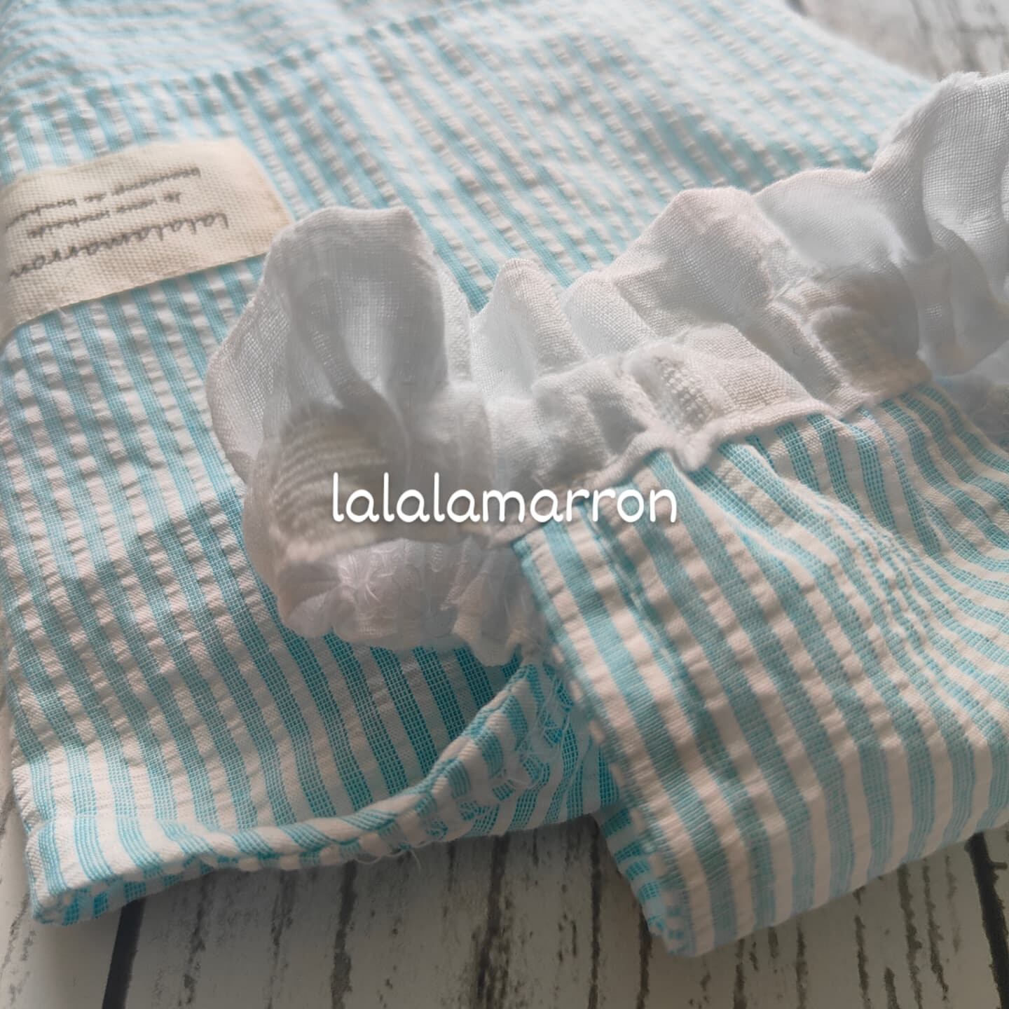 犬服 ネックギャザーキャミ#先染めサッカーストライプ(受注)