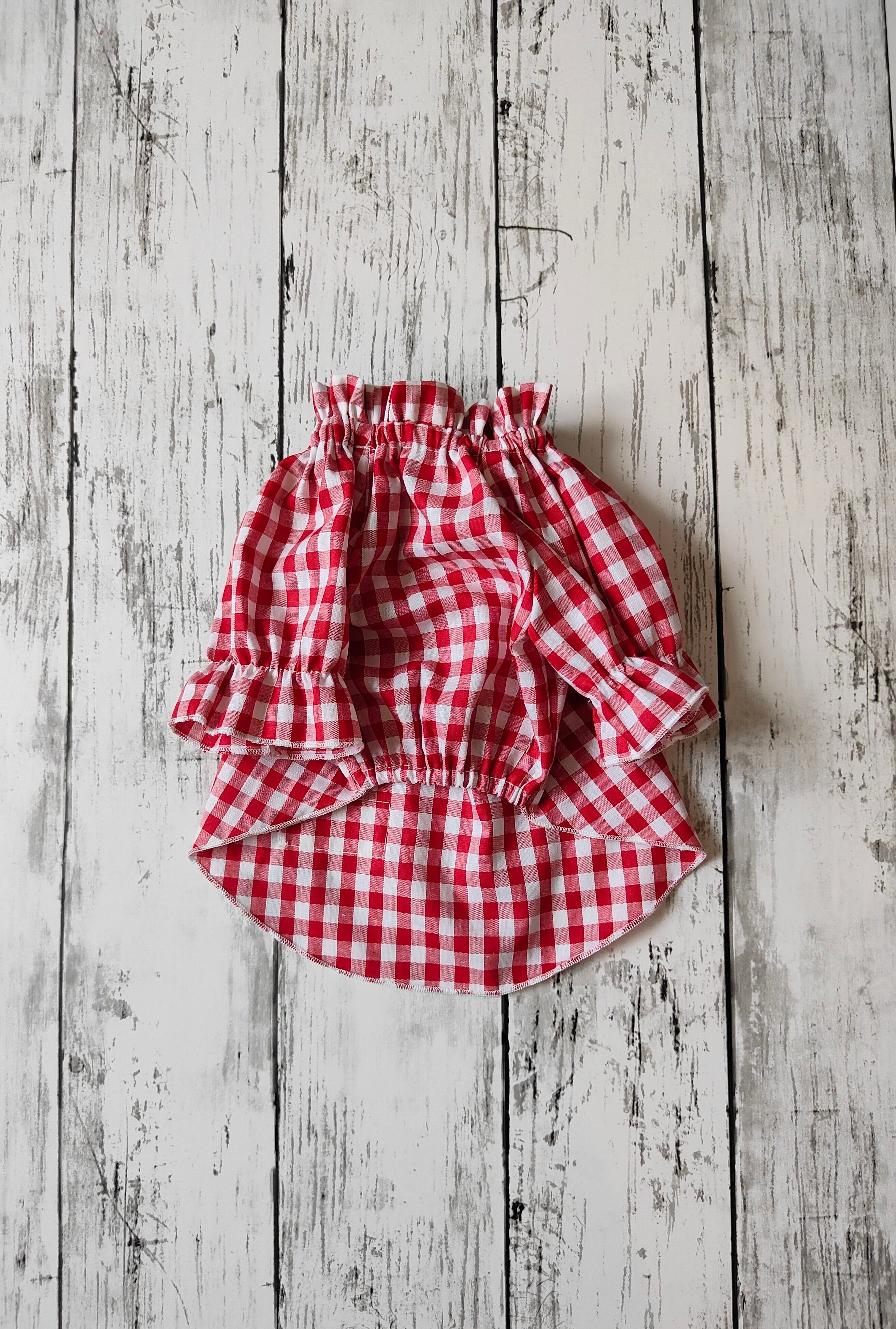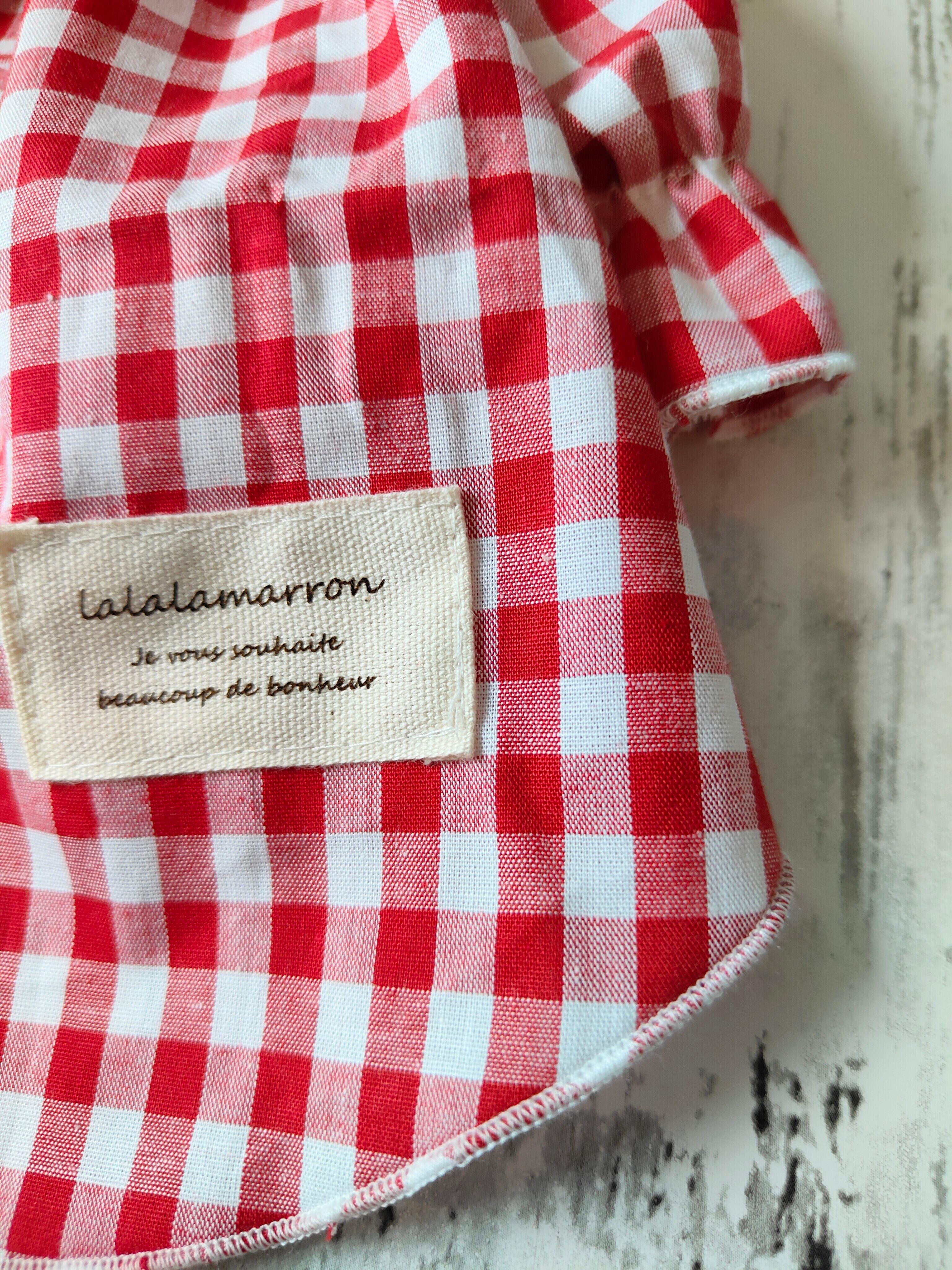 ぱっと目を引く赤のギンガムチェック柄のコットン生地です。薄手でブラウスにちょうどよい厚みと生地感、コットン100%で肌触りも柔らかくてやさしい素材です。
