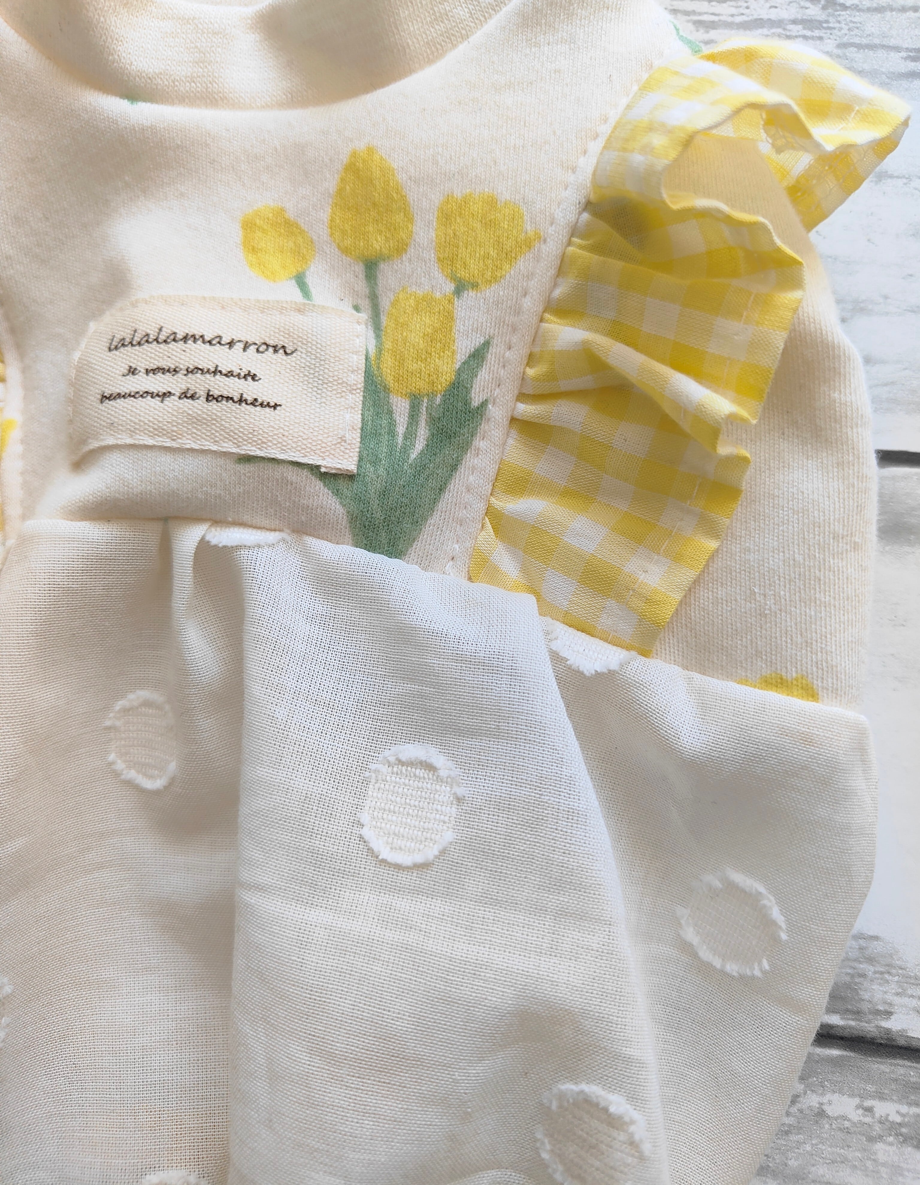 フリルとスカートのフリル部分に黄色のギンガムチェックをあわせました。